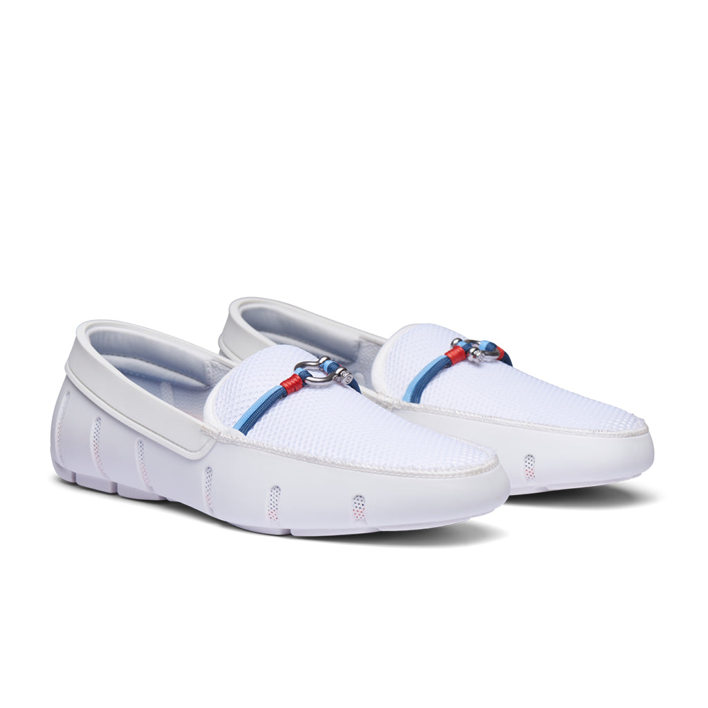 Each season we look to reinvent classics with design innovation. SWIMS’ newest addition to the loafer collection pushes forward with a nautical shackle grommet with signature SWIMS branding and roping that adds a multi-coloured pop. Innovation aside, you can expect the same quality comfort and construction as our other loafers. Whether offshore or on land, the Riva Loafer will be your new summer go-to.