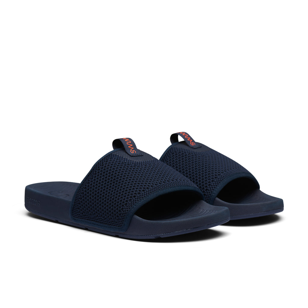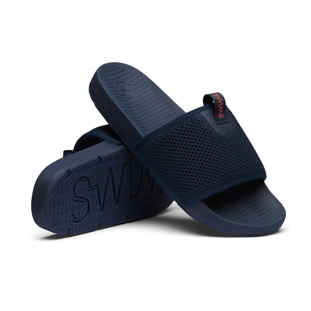 The newest SWIMS slide is crafted with a molded EVA footbed for all day comfort and a durable rubber outsole for traction on slippery surfaces. The engineered knit upper features a TPU patch and a Nylon pull tab with raised SWIMS branding.