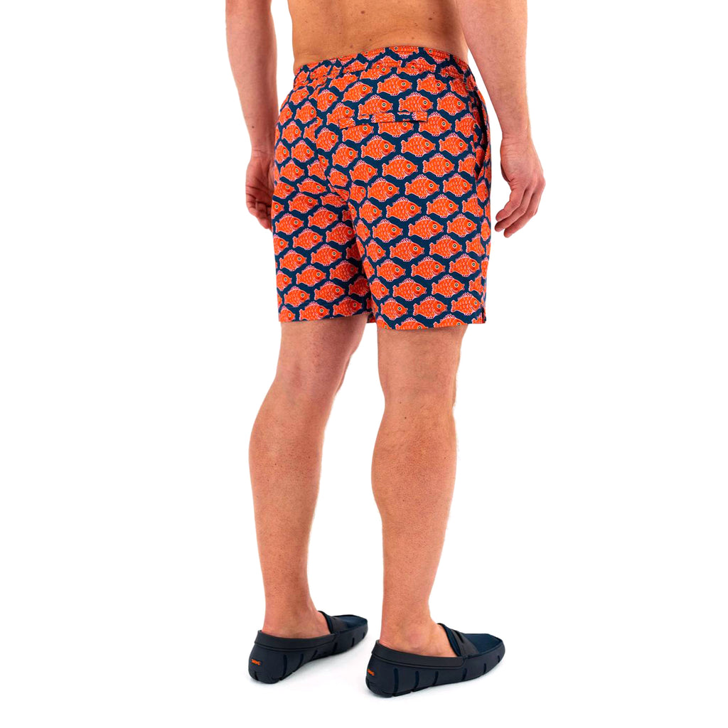 Home office approved and perfect for those days of video conferencing followed by a quick paddleboard session or dip in the pool. The classic swim short’s elastic waistband, 6 1/2” inseam, 4-way mechanical stretch and mesh lining reimagines the classic swim trunk in an allover fish pattern. Take on whatever the day may throw your way.